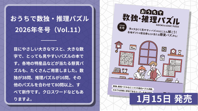 - 2026年01月09日おうちで数独・推理パズル2026年冬号(Vol.11) 1月15日発売