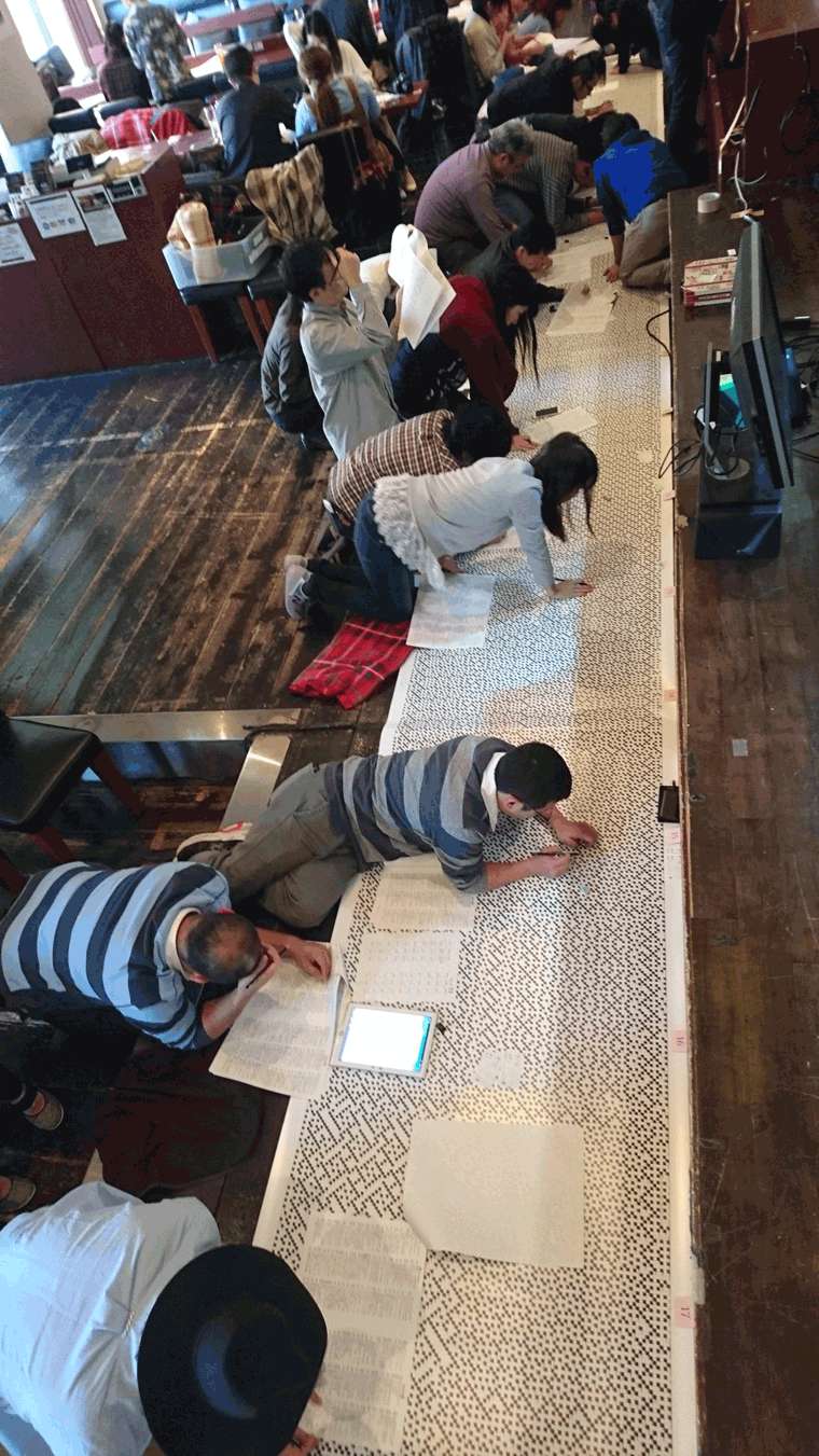 紀伊國屋梅田本店で、世界最大のクロスワードパズル「メガクロス」巻物版が展示されました