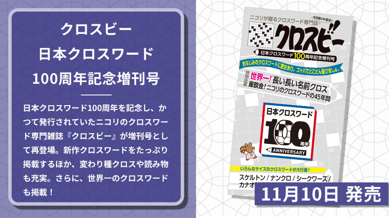 - 2025年11月04日クロスビー 日本クロスワード100周年記念増刊号 11月10日発売