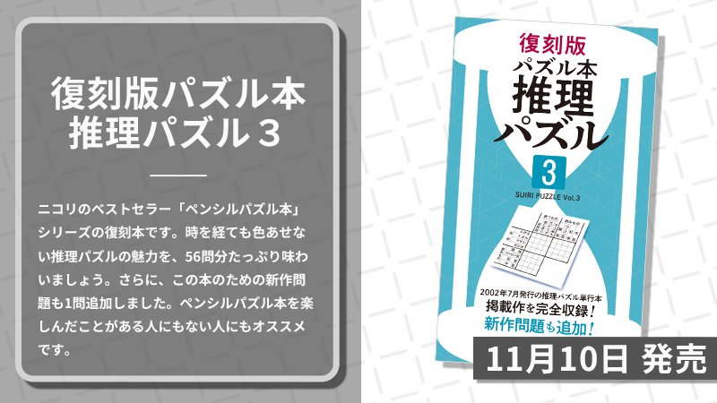 - 2025年11月04日復刻版パズル本 推理パズル3 11月10日発売