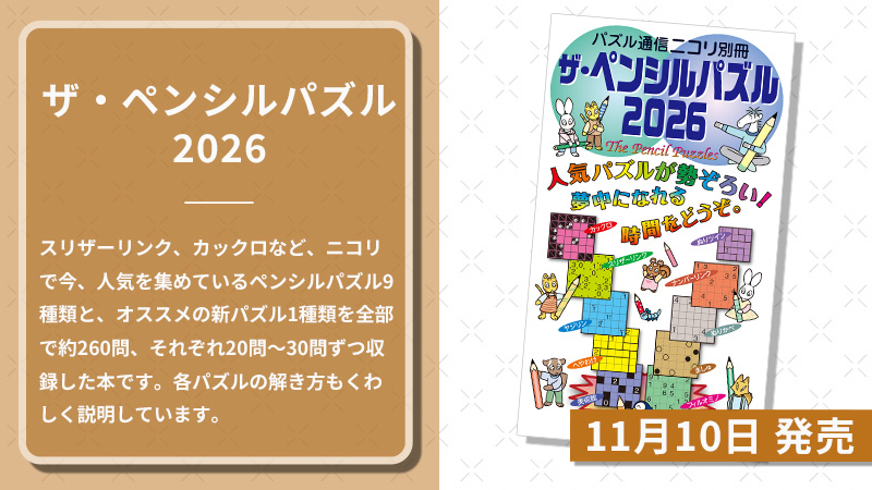 - 2025年11月04日ザ・ペンシルパズル2026 11月10日発売