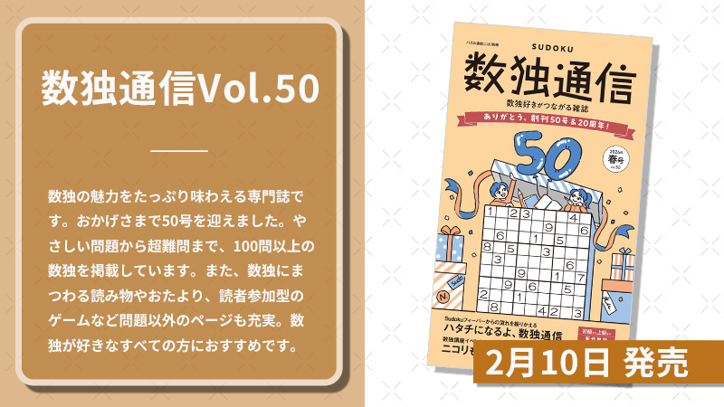 - 2026年02月04日数独通信Vol.50 2月10日発売