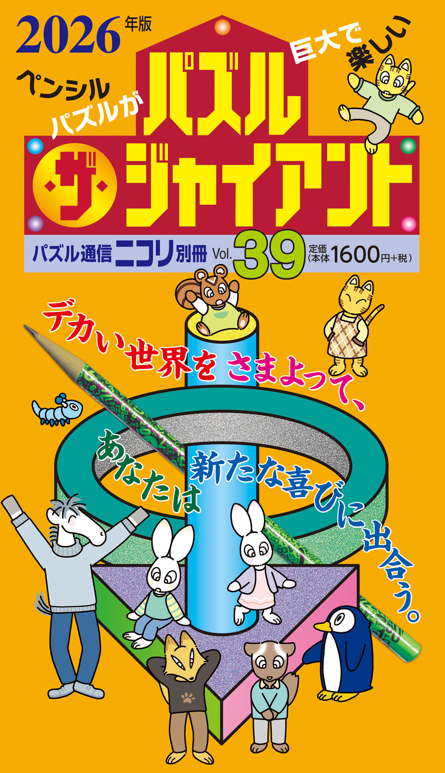 ニコリでおなじみのパズル30種類以上をすべて大きなサイズで楽しめる、年1回発行の人気シリーズ「パズル・ザ・ジャイアント」の2026年版です。数字のパズル、言葉のパズル、イラストを使ったパズルなど、全部で約100問の巨大パズルを収録。ほとんどの盤面が1問1ページ大で、さらに大きなとじこみサイズの問題もあります。どのページから始めても、迫力満点、解きごたえ十分。すべてのペンシルパズルファンに、自信をもってお届けします。